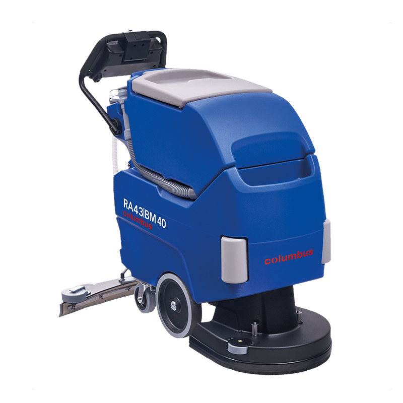 Columbus RA 43 BM 40 Quick-Stop je bateriový chodicí mycí stroj s pojezdem, který zajišťuje pohodlnou a efektivní práci i při delším používání. V jednom pracovním kroku podlahu namočí, vydrhne a odsaje znečištěnou vodu, takže je povrch okamžitě čistý a bezpečný pro provoz.