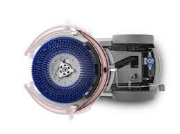 Stroj provádí celý proces v jednom kroku — namočí, kartáčem vydrhne a odsaje špinavou vodu, čímž zanechává podlahu čistou, suchou a připravenou k provozu. Díky pracovnímu záběru 385 mm je ideální i pro prostory s úzkými uličkami nebo pod stoly.