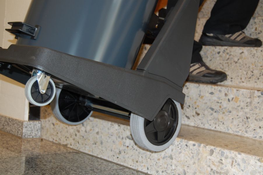 Podvozek s velkými koly usnadňuje manipulaci jak po rovné ploše tak i po schodištích. Vysavač disponuje pohodlným vyléváním tekutin z odpadní nádoby pomocí výklopného zařízení na podvozku. Vysavač je vybaven dvěmi by-pass motory ovládanými jednotlivě. Díky click-systému lze jednoduše odpojit sací hadici. Velkou výhodou je filtrace výfukového vzduchu přes speciální antibakteriální sanifiltr.