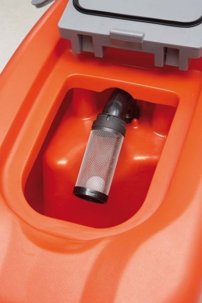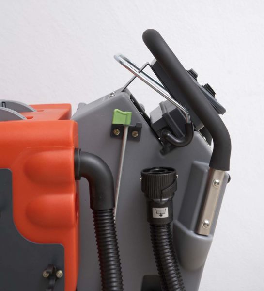 V jednom pracovním cyklu podlahu namočí, vydrhne a současně odsaje znečištěnou vodu, takže je ihned čistá a suchá. Výkonný kartáčový a sací systém zaručuje perfektní výsledek i při čištění silně znečištěných podlah. Díky velké kapacitě nádrží (až 55 litrů) umožňuje dlouhou dobu práce bez nutnosti častého doplňování vody.