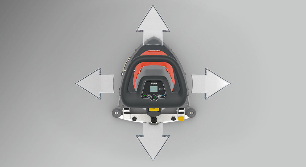 Nový Hako-Delta-Cleaning-System přesvědčí svým neutrálním pohonem vpřed. Obsluha má plnou kontrolu nad prací, která tak vyžaduje jen malou fyzickou námahu. Mycí stroj se tak může přiblížit k úzkým a členitým prostorům s přesností a s lehkostí. Kartáčová hlava byla navržena tak, aby umožňovala čištění v blízkosti stěn a v rozích, stejně jako pod nábytkem (stoly, židle apod.) a podstavci. A to vše ve výšce pouhých 12 cm.
