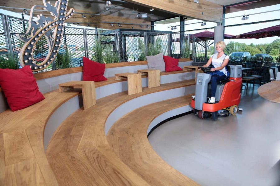 V jednom pracovním kroku podlahu namočí, vydrhne a odsaje znečištěnou vodu, takže zůstává čistá, suchá a bezpečná. Díky výkonnému sacímu systému a silnému přítlaku kartáče dosahuje vynikajících výsledků i při silném znečištění. Velká kapacita nádrží (až 75 litrů) umožňuje dlouhou dobu provozu bez nutnosti doplňování vody.