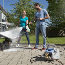 Kränzle K 1050 P je výkonný elektrický vysokotlaký čistič navržený pro intenzivní každodenní použití. Kvalitní čerpadlo s mosaznou hlavou a keramickými písty zajišťuje stabilní pracovní tlak a dlouhou životnost i při trvalém zatížení. Stroj je vhodný pro čištění podlah, strojů, vozidel, technologických zařízení i venkovních ploch, kde je nutné odstranit bláto, prach, olejové nečistoty nebo zaschlé usazeniny.
