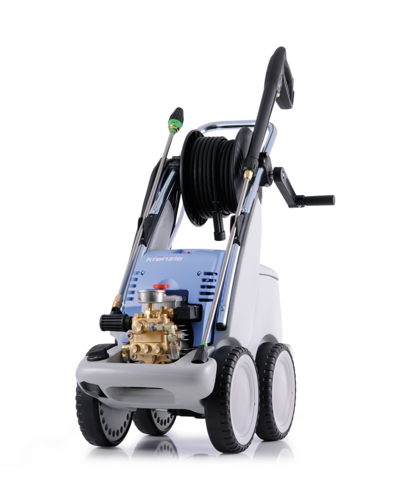 Profesionální vysokotlaký studenovodní čistič na čtyřkolém podvozku s navíjecím bubnem (20m vysokotlaké hadice), rotační tryskou a funkcní Total-Stop v základní výbavě. S pracovním tlakem 180 Barů a průtokem 13 l/min je tento stroj vhodný pro průmyslové použití, jako např. mytí nákladních vozů, odstraňování starých nátěrů (ve spojení s pískovací sadou) apod.