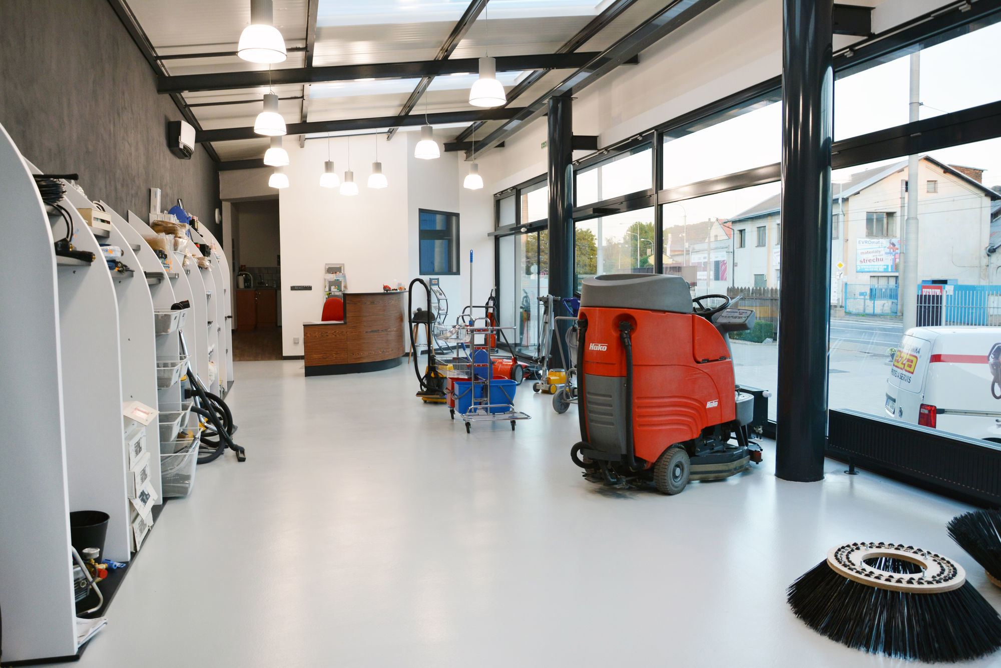 Zajišťujeme prodej a servis podlahových mycích strojů a automatů s odsáváním, zametacích strojů, komunálních samosběrných zametacích strojů, komunálních nosičů nástaveb, průmyslových a profesionálních vysavačů na 230 V a 400 V, průmyslových vysavačů a vysavačů do výbušného prostředí, tlakových mycích strojů - „Vapky“ (od mobilních elektrických, přes benzínové a stacionární, až po originální příslušenství), rozmývacích a leštících strojů. V nabídce je zastoupeno i potřebné příslušenství v podobě úklidových vozíků, mopů, stěrek a další drobné úklidové techniky a také chemické prostředky pro mycí stroje.